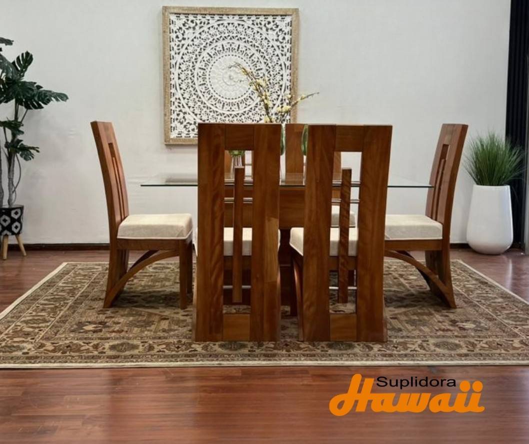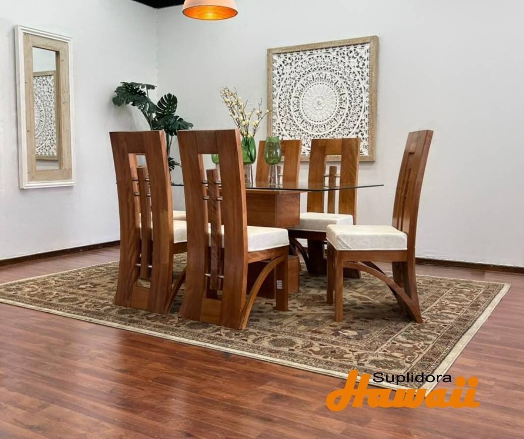 COMEDOR CAPRICHO NATURAL 6/S T/CRISTAL TAPIZ/CREMA P.M.