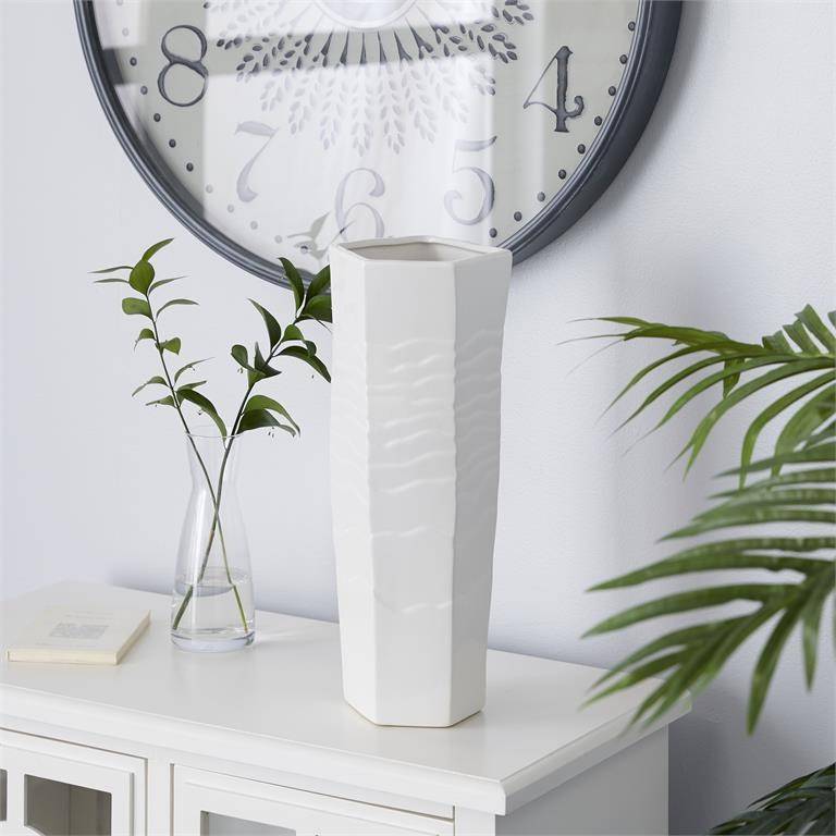 JARRON C/TEXTURA 57494 CERAMICA BLANCA 6``W,16``H
