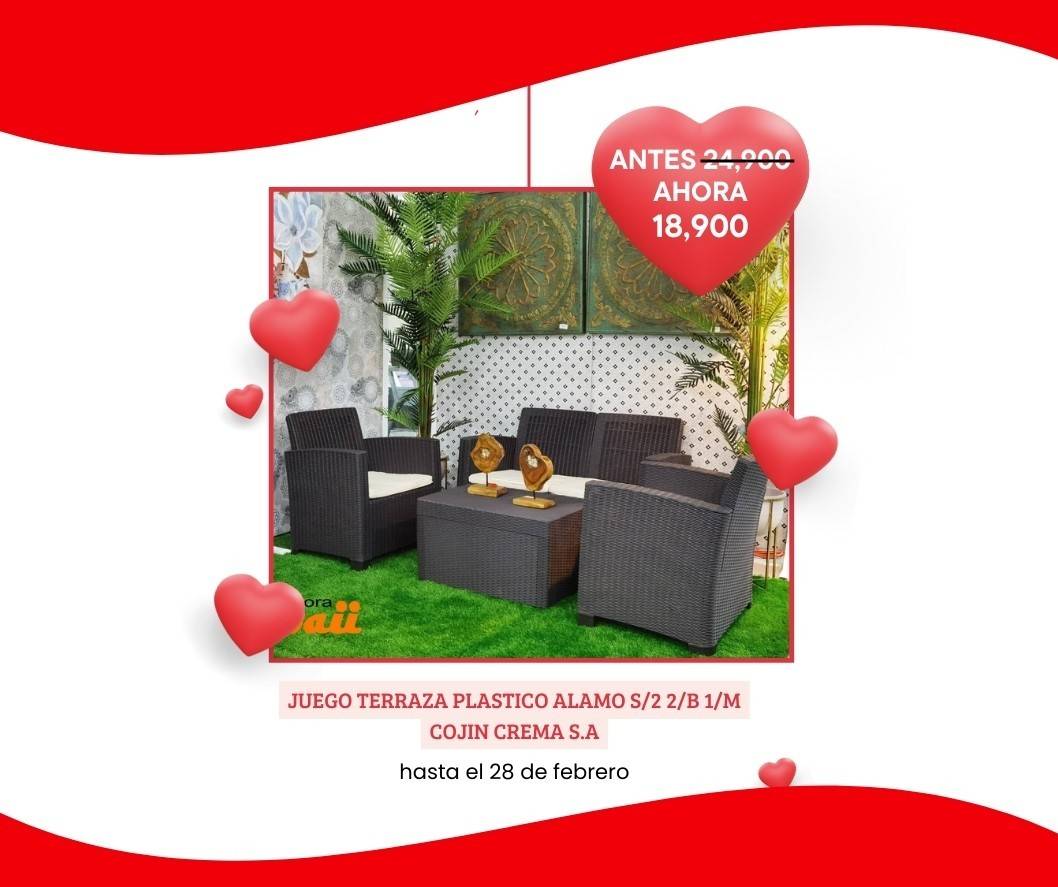 JUEGO TERRAZA PLASTICO ALAMO S/2 2/B 1/M COJIN CREMA