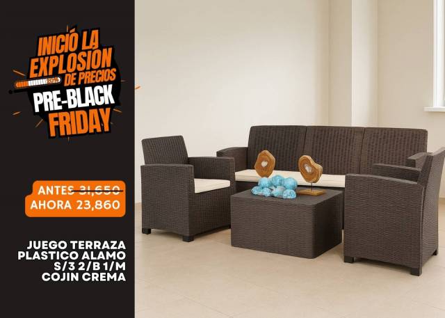 JUEGO TERRAZA PLASTICO ALAMO S/3 2/B 1/M COJIN CREMA