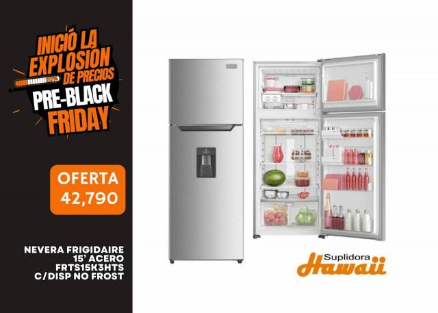 NEVERA FRIGIDAIRE 15’ ACERO FRTS15K3HTS C/DISP NO FROST