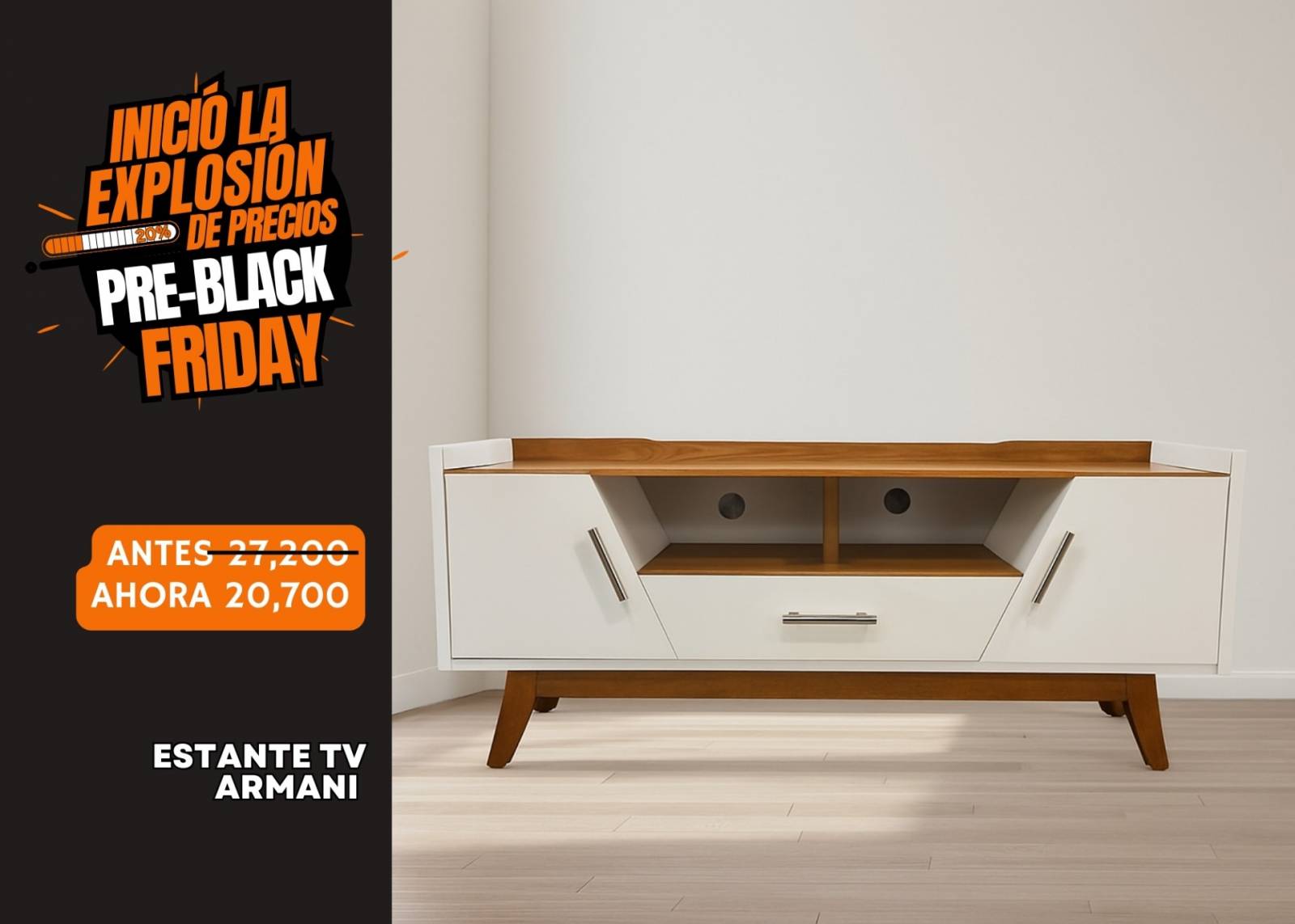 ESTANTE TV ARMANY BLANCO C/NATURAL R.A