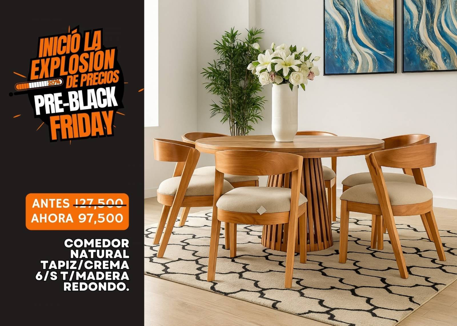 COMEDOR JUPITER NATURAL TAPIZ/CREMA 6/S T/MADERA REDONDO R.A.