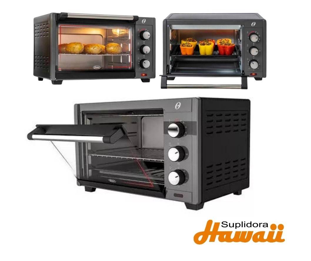 Diseñado para resultados rápidos y deliciosos, este horno de 30 litros es ideal para gratinar y tostar Cocina los alimentos de manera uniforme Tiene una luz interior para que puedas supervisar la cocción de los alimentos mientras se cocinan Cuenta con temporizador de hasta 120 minutos con apagado automático Cuatro funciones para asar, hornear, tostar y calentar Disponible en 120 voltios y 220 voltios dependiendo del país