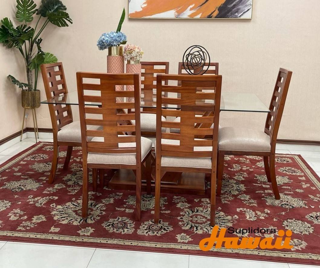 COMEDOR CEBRA 6/S NATURAL T/CRISTAL TAPIZ/CREMA T.R