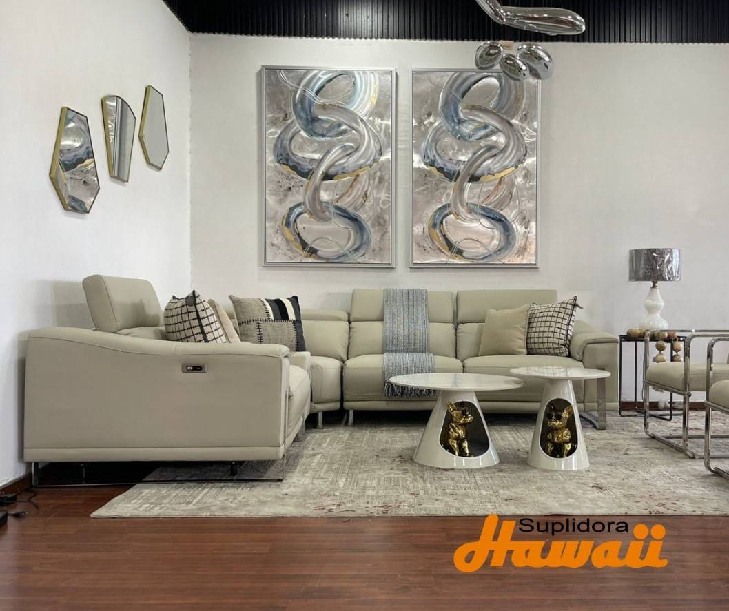 MUEBLE SECCIONAL 6 PZS XF-2523-C-PP CREMA C/PATAS PLATEADAS RTR